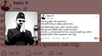 काठमाडौं । प्रधानमन्त्री बालेन शाहले मातातीर्थ औंसी अर्थात् आमाको मुख हेर्ने दिनको अवसरमा सम्पूर्ण आमाहरूप्रति श्रद्धा र सम्मान व्यक्त गर्दै शुभकामना दिएका छन् । शुक्रबार सामाजिक सञ्जालमार्फत प्रधानमन्त्री शाहले ‘जननी जन्मभूमिश्च स्वर्गादपि गरीयसी’ संस्कृत श्लोकउद्धृत गर्दै आमा र मातृभूमिको महिमा स्वर्गभन्दा पनि उच्च रहेको उल्लेख गरेका हुन् । उनले भने,