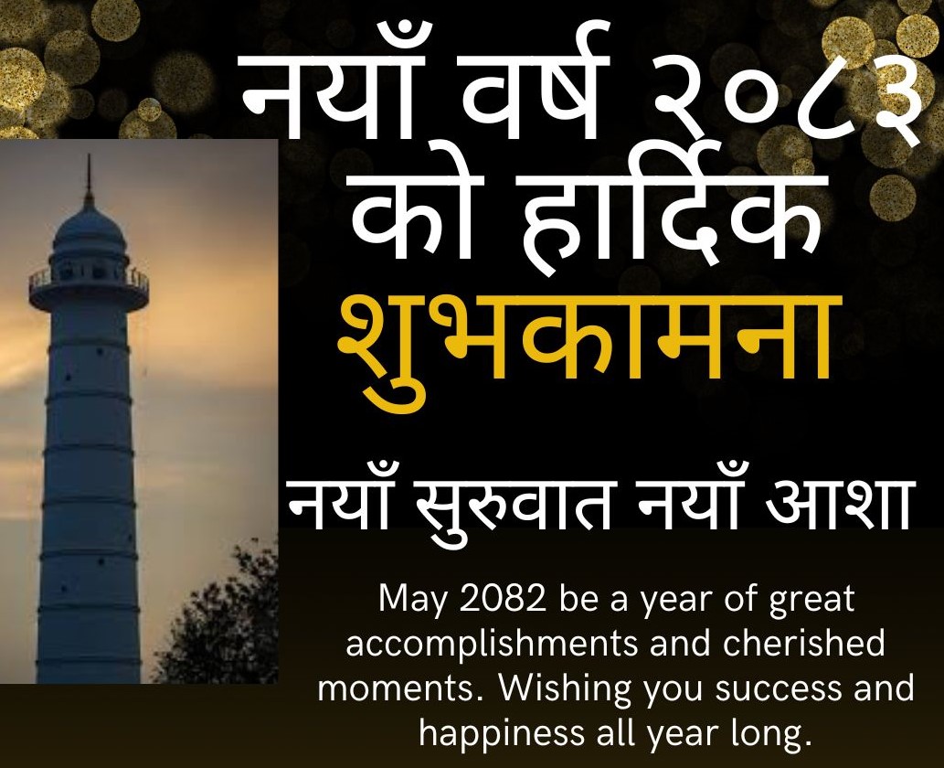 काठमाडौं । आजदेखि विक्रम सम्वत् २०८३ साल सुरु भएको छ । नयाँ वर्ष प्रारम्भ भएको पहिलो दिन आज नेपालमा र विदेशमा रहेका नेपालीहरुले हर्षोल्लासका साथ एक आपसमा शुभकामना आदानप्रदान गरी मनाउँदै छन् ।