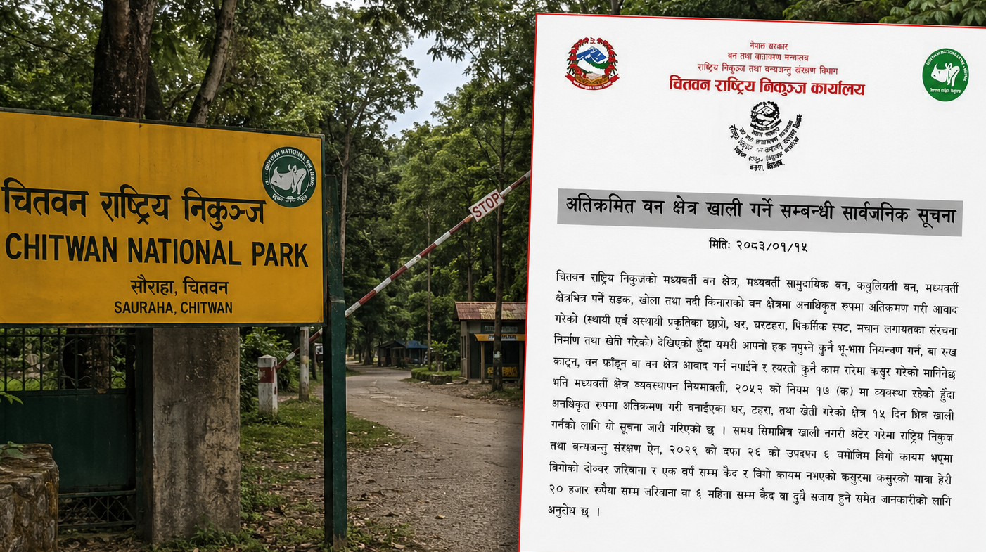चितवन राष्ट्रिय निकुञ्ज क्षेत्रका अवैध संरचना हटाउन १५ दिनको अल्टिमेटम